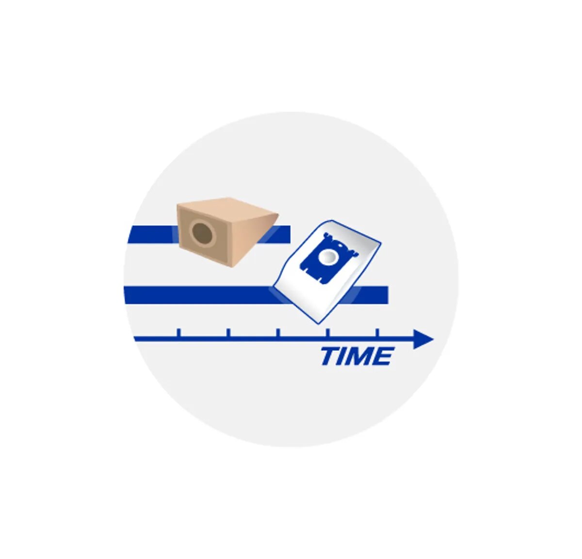 Syntetické vrecká do vysávačov DURAFLOW™ Fresh majú až o 50 % dlhšiu životnosť ako normálne papierové vrecká do vysávačov. Vďačia za to štruktúre materiálu, ktorý vrecku dodáva lepšiu schopnosť zadržiavať prach a zároveň poskytuje konštantne vyšší sací výkon pri jeho postupnom zapĺňaní.