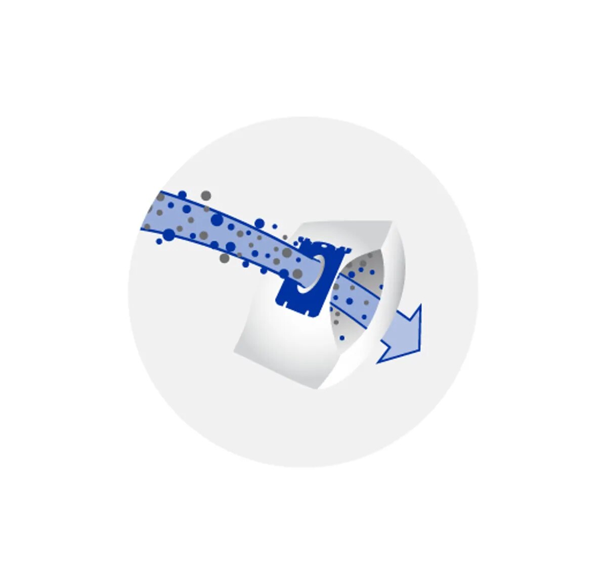 Kvalitný syntetický materiál DURAFLOW™ Fresh zabezpečuje optimálne prúdenie vzduchu a lepší filtračný výkon než papierové vrecká do vysávačov. To znamená, že vrecká na prach DURAFLOW™ Fresh sú ideálne pre ľudí s alergiami a zabezpečujú zdravšie prostredie v domácnosti. Použitie inovatívnej technológie utesnenia tiež zaručuje, že po zaplnení možno vrecká do vysávačov vybrať zo spotrebiča hygienicky.